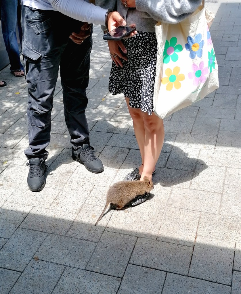 I almost couldn’t believe my eyes; the Quokkas were crawling around our feet, searching for scraps of food and looking super scruffy.