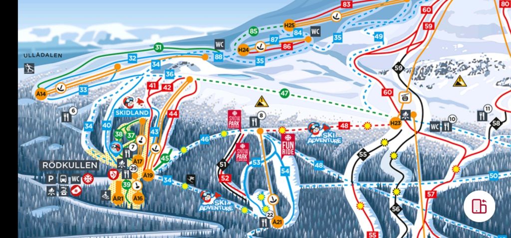 As a reminder; Never go skiing alone, and please always check the weather before heading out! As you can see in the SkiStar app, the weather changes quite a lot depending on which side of the mountain you are on. It will likely always be chillier and more windy up at high altitude. Have the emergency numbers ready at hand, you can collect them from the map boards around the skiing areas. Always travel with travel insurance, that covers international travels. Especially when performing sports in a semi-hostile environment 🙂
