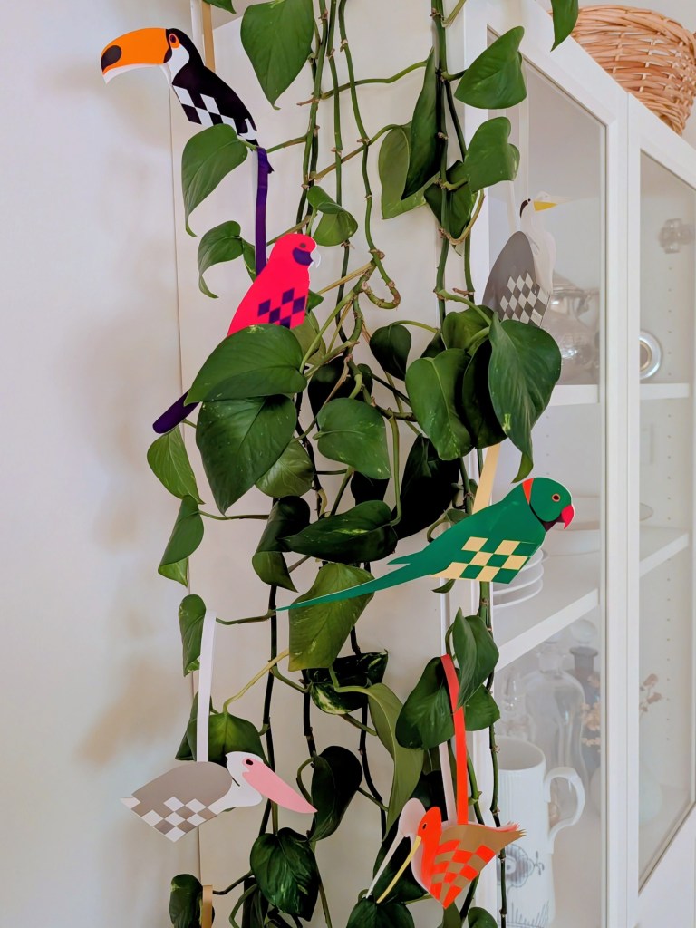 The paper birds are so much fun! Love a pop of color that reminds one of past travels.